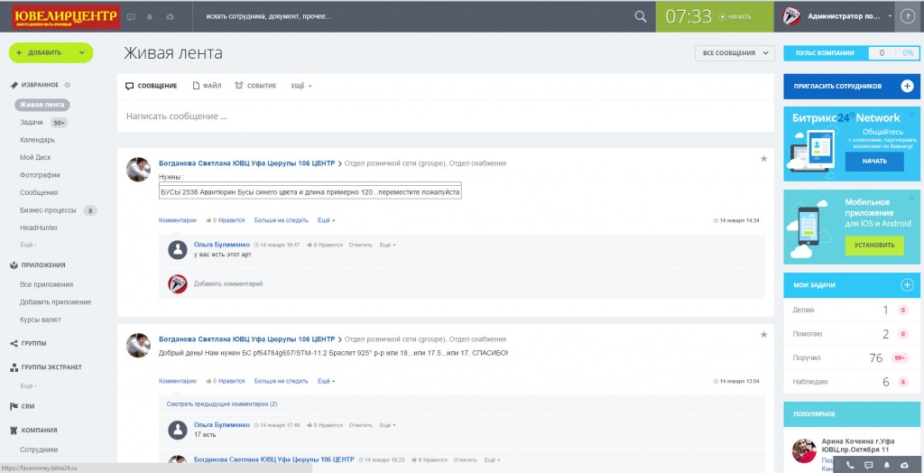 Как наладить взаимопонимание в сети? Опыт работы в «Битрикс24» группы компаний «Ювелирцентр»