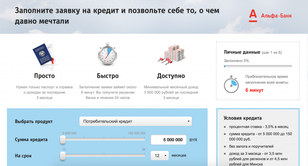 Такое умное автоматизированное решение хотели получить в белорусском «Альфа-Банке», для которого нужно было сделать онлайн-анкету для желающих получить кредит.