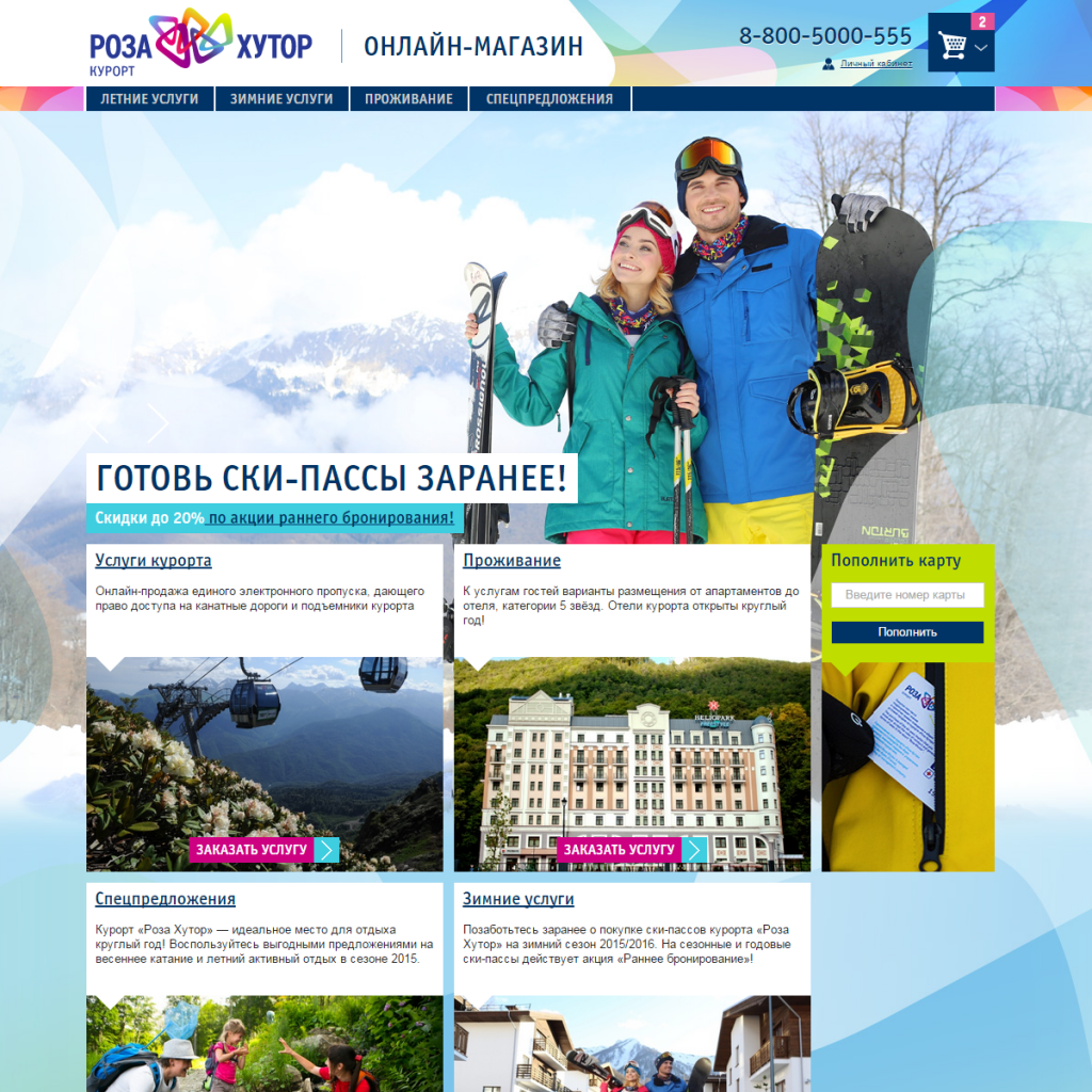 Интернет-магазин горнолыжного курорта «Роза Хутор», расположенного в Красной поляне Сочи, — прекрасный пример того, как можно, с одной стороны, сделать процесс выбора места отдыха простым и удобным, а с другой — повысить эффективность операционных бизнес-процессов. В результате, как показало время, выигрывают все: и компания, и ее клиенты.