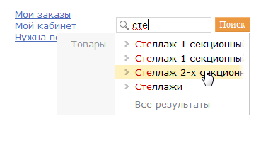 6. Механизм мгновенного поиска по контенту сайта с подсказками в результатах.