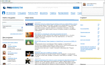 Корпоративный портал РИА Новости стал основным внутренним ресурсом для освещения событий московского офиса Медиахолдинга. Портал «живет» – что-то новое появляется на нем ежедневно, обновления происходят мгновенно, в режиме реального времени. Обладая собственными фотобанком и видеобазой, он служит площадкой для оперативного обмена как служебной, так и сопутствующей информацией между подразделениями и сотрудниками Агентства.