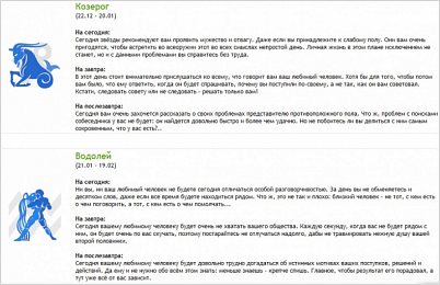 - http://marketplace.1c-bitrix.ru/solutions/inseco.horolove/ - «Любовный гороскоп для каждого знака» на 3 дня.