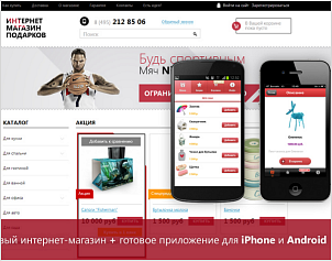 4 место: «Интернет-магазин подарков» от студии «Факт» - готовый интернет-магазин с мобильной версией и готовыми приложениями для IPhone и Android, что поможет увеличить конверсию сайта в разы.