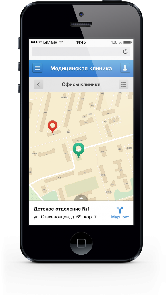Многие медицинские учреждения зачастую имеют филиалы, территориально разнесенные между собой. Это может быть, например, сеть клиник или больница, имеющая различные филиалы и отделения, а также департамент здравоохранения города, края или региона. В этом случае особенно важно обеспечить пользователю быстрый поиск нужной клиники для записи или уточнения информации о медицинском учреждении.