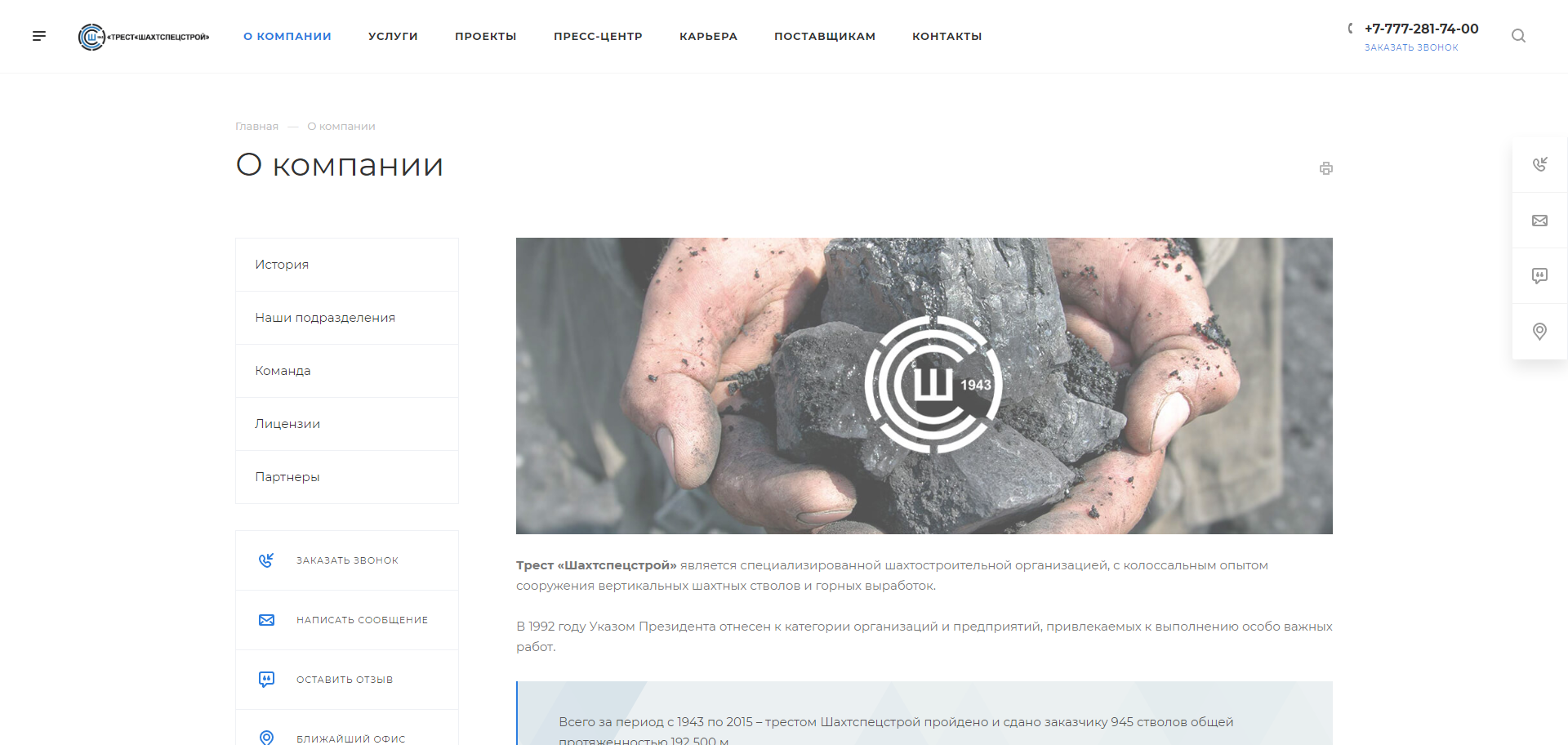 Вернуться к спискуТрест «Шахтспецстрой» является специализированной шахтостроительной организацией, с колоссальным опытом сооружения вертикальных шахтных стволов и горных выработок.