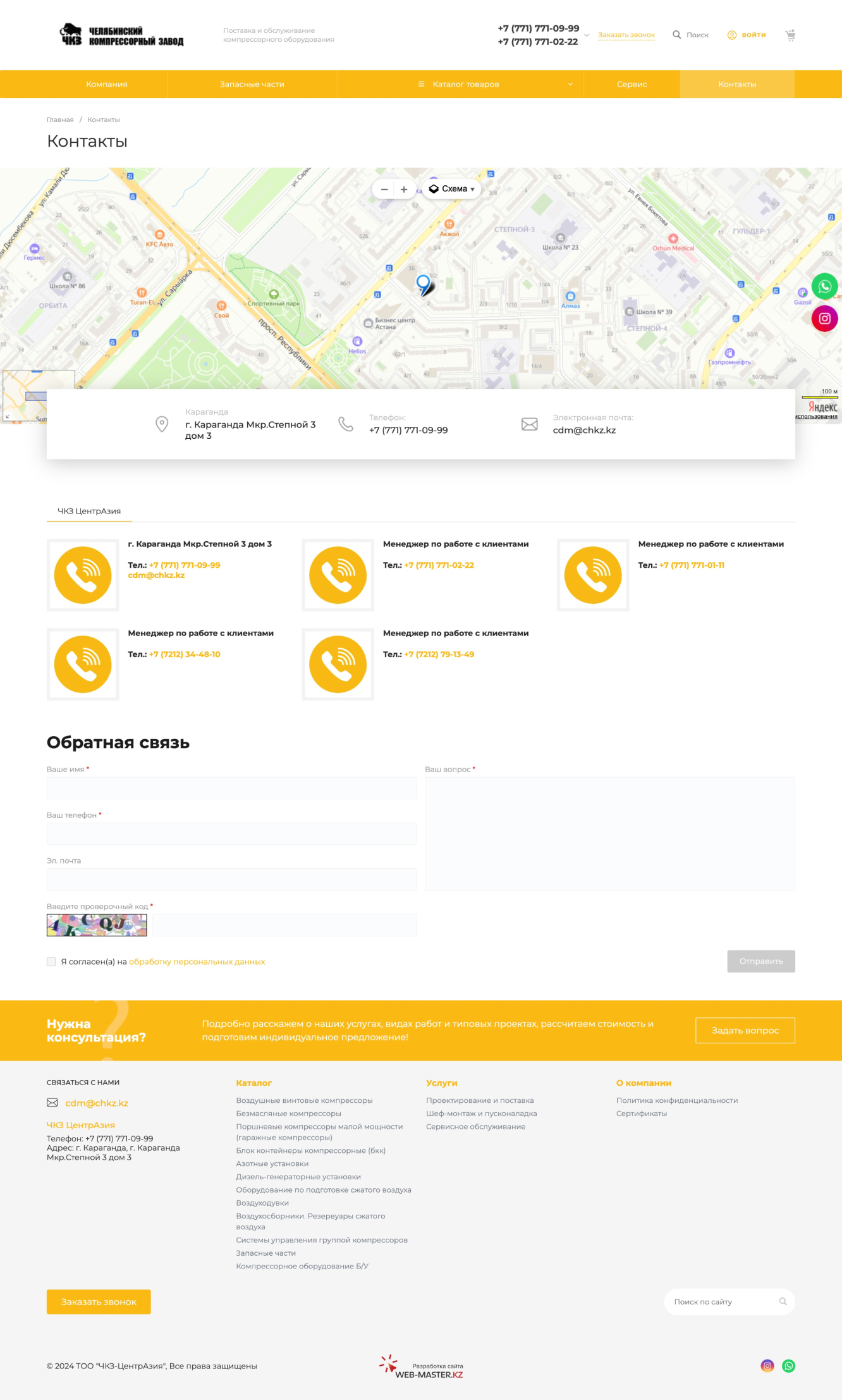 Сайт ТОО «ЧКЗ - ЦентрАзия» успешно функционирует, привлекая новых клиентов и поддерживая существующих. Яркий дизайн и удобный интерфейс делают его привлекательным и простым в использовании.