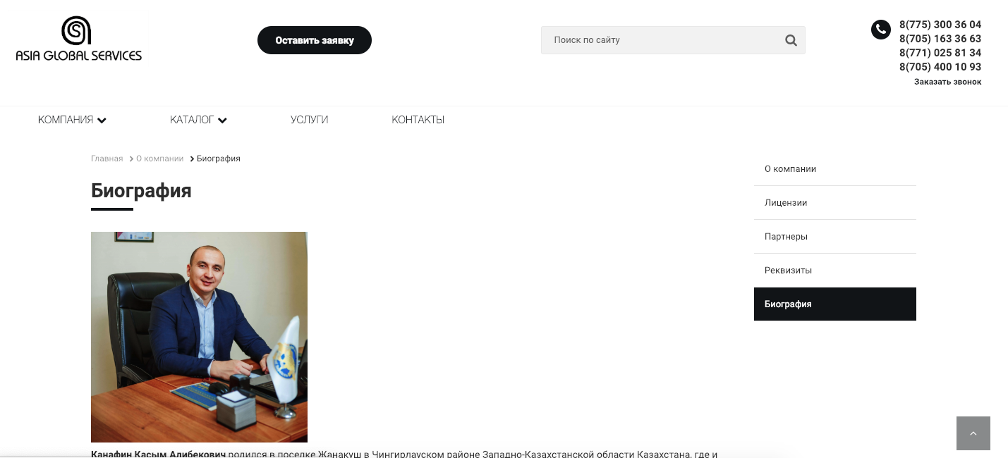 Корпоративный сайт промышленной компании в Западном Казахстане из нефте-газового сектора. Основной задачей было создать простой и информативный сайт для ознакомления с услугами компании ТОО Asia Global Services. Большое внимание было уделено при создании контента, максимально простой и понятный текст для будущих клиентов и партнеров.