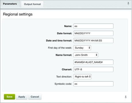 - Символьный код - двухсимвольный код для этого набора региональных параметров.
