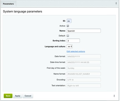- По умолчанию - если отмечено, указывает, что язык используется по умолчанию.